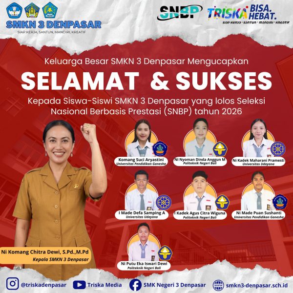 Pada hari Senin, 09 September 2024, SMK Negeri 3 Denpasar kembali kedatangan tamu studi tiru dari SMK Negeri  1 Pacet – Cianjur – Jawa Barat. Tamu rombongan diterima langsung oleh kepala SMKN 3 Denpasar beserta jajaran staff pimpinan serta beberapa dewan guru dan pegawai di aula sekolah.